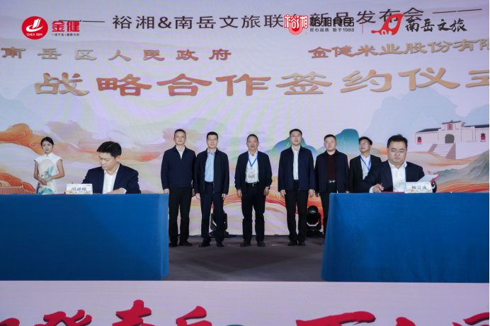 下午举办的“裕湘食品&南岳文旅联合新品发布会”成为本次活动另一大亮点。发布会上,金健米业与南岳区人民政府达成战略合作,双方将在“寿文化+健康粮油食品”产业融合等方面深化合作。