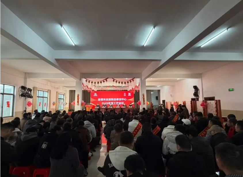 2月10日,金健米业面制品事业中心在郴州面制品厂召开2026年度工作会议。面制品中心党总支书记、总经理曾春平作题为《以“四大支柱”构筑发展新格局 以“系统思维”提升竞争硬实力》的工作报告,会议由面制品中心党总支委员、副总经理徐健主持。